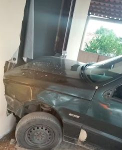 Conforme informações da Brigada Voluntária Águia Resgate, o motorista passou mal ao volante, perdeu o controle do veículo, atingiu a lateral de outro carro e, em seguida, invadiu um terreno, colidindo contra uma residência e derrubando parte da parede da frente.
